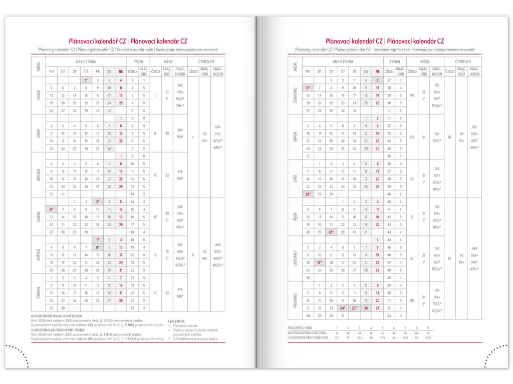 • pracovní plánovací kalendář