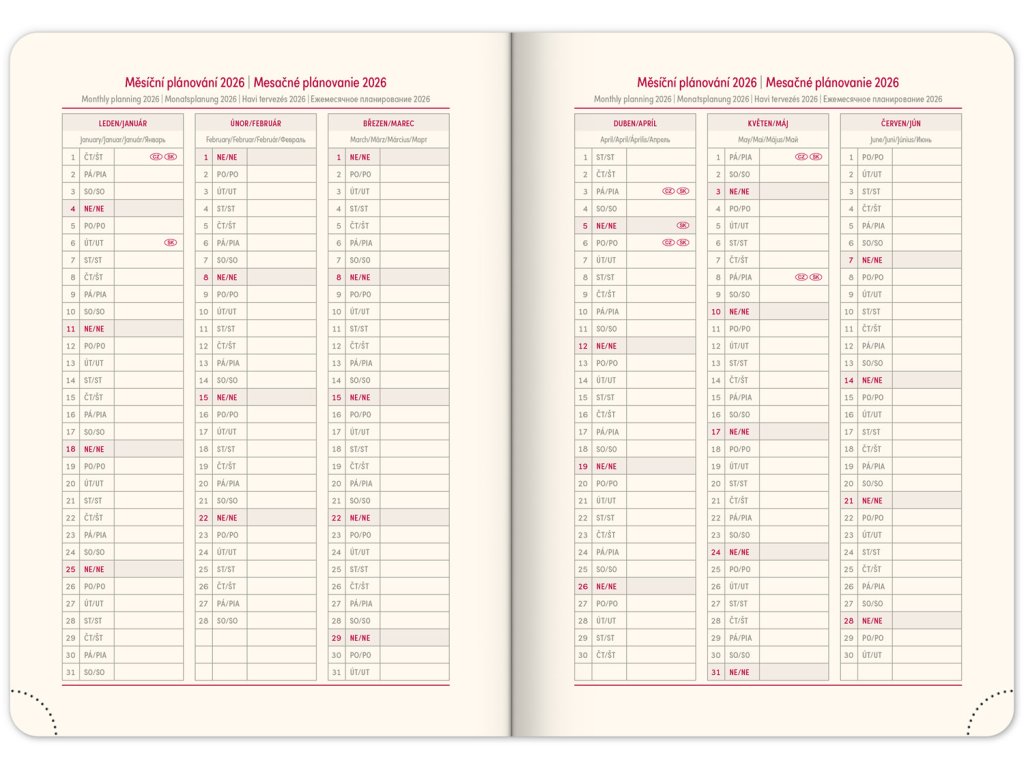 | Vazba: | tuhá knižní s gumičkou na uzavření a poutkem na tužku |