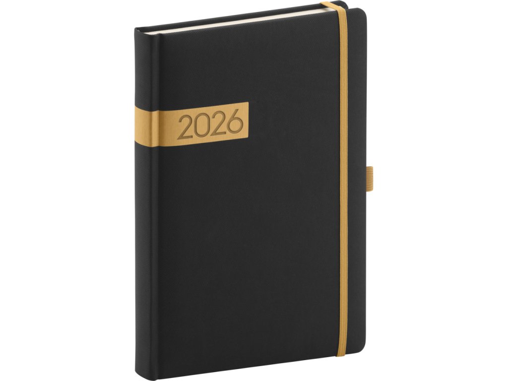 NOTIQUE Denní diář Twill 2026, černo-zlatý, 15 x 21 cm