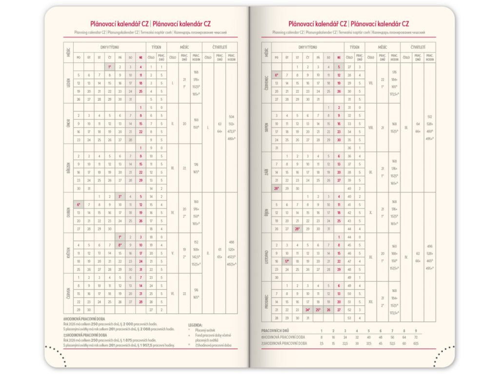 • pracovní plánovací kalendář