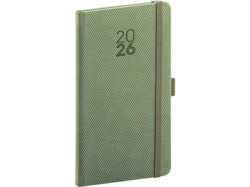 NOTIQUE Kapesní diář Diamante 2026, olivový, 9 x 15,5 cm