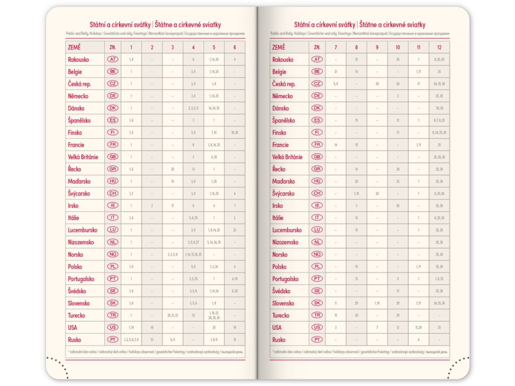 • svátky České a Slovenské republiky a mezinárodní svátky