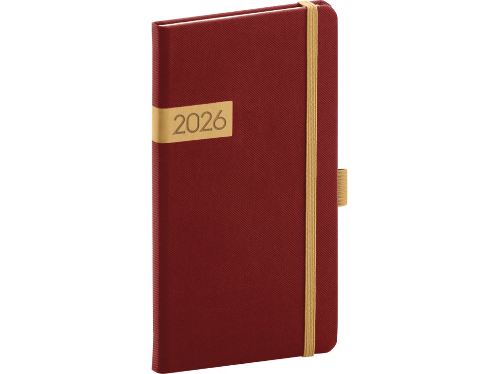 NOTIQUE Kapesní diář Twill 2026, bordó-zlatý, 9 x 15,5 cm