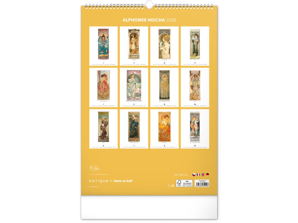 NOTIQUE Nástěnný kalendář Alfons Mucha 2026, 33 x 46 cm