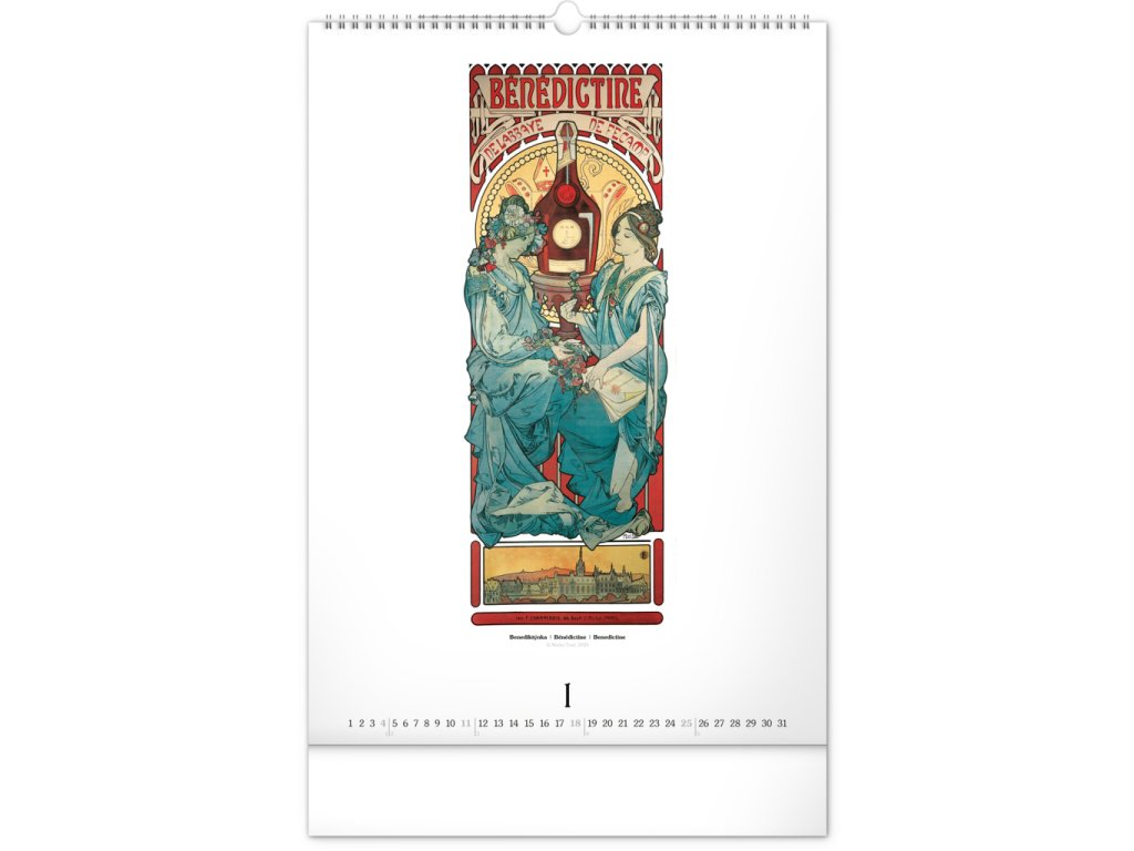 Nástěnný kalendář ve velkém formátu s reprodukcemi obrazů oblíbeného secesního malíře českého původu. Reprodukce doplňuje vkusné univerzální kalendárium s vyznačenými nedělemi a popisky děl ve čtyřech jazycích (CZ, FR, EN, DE).Doplňkové parametry