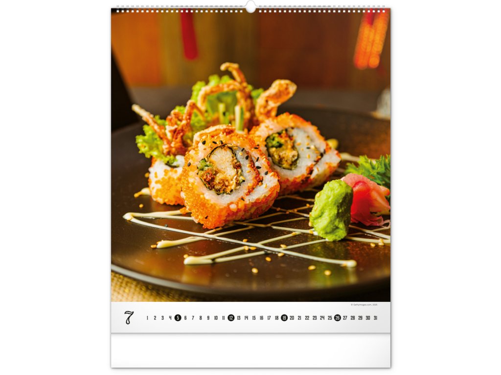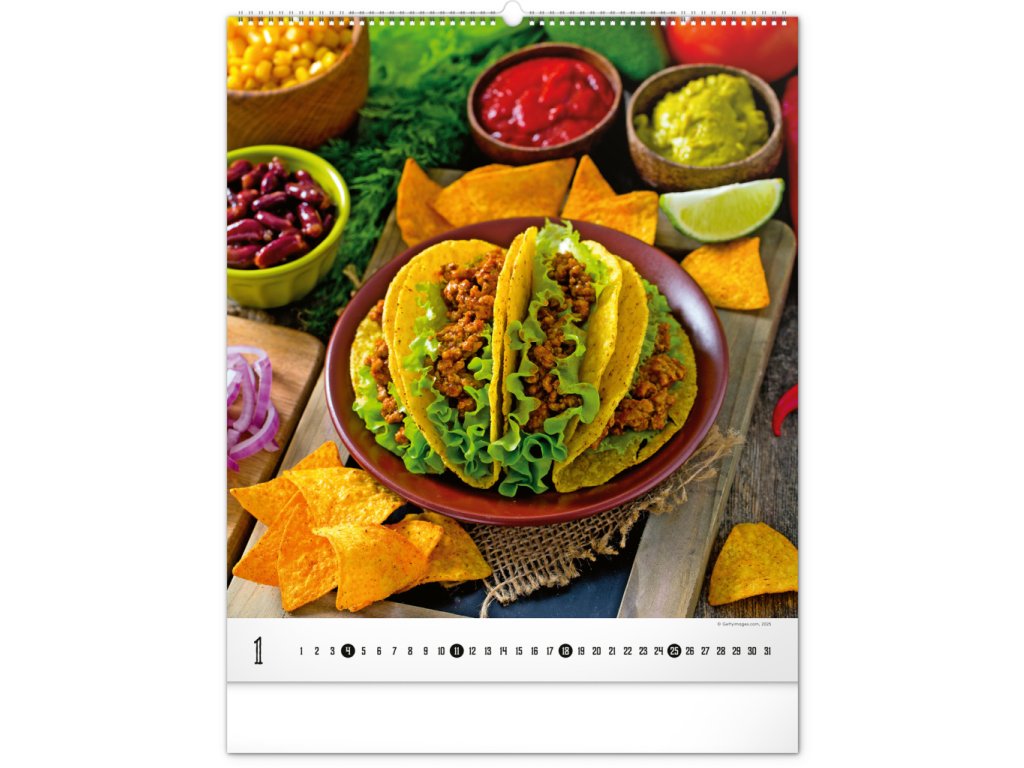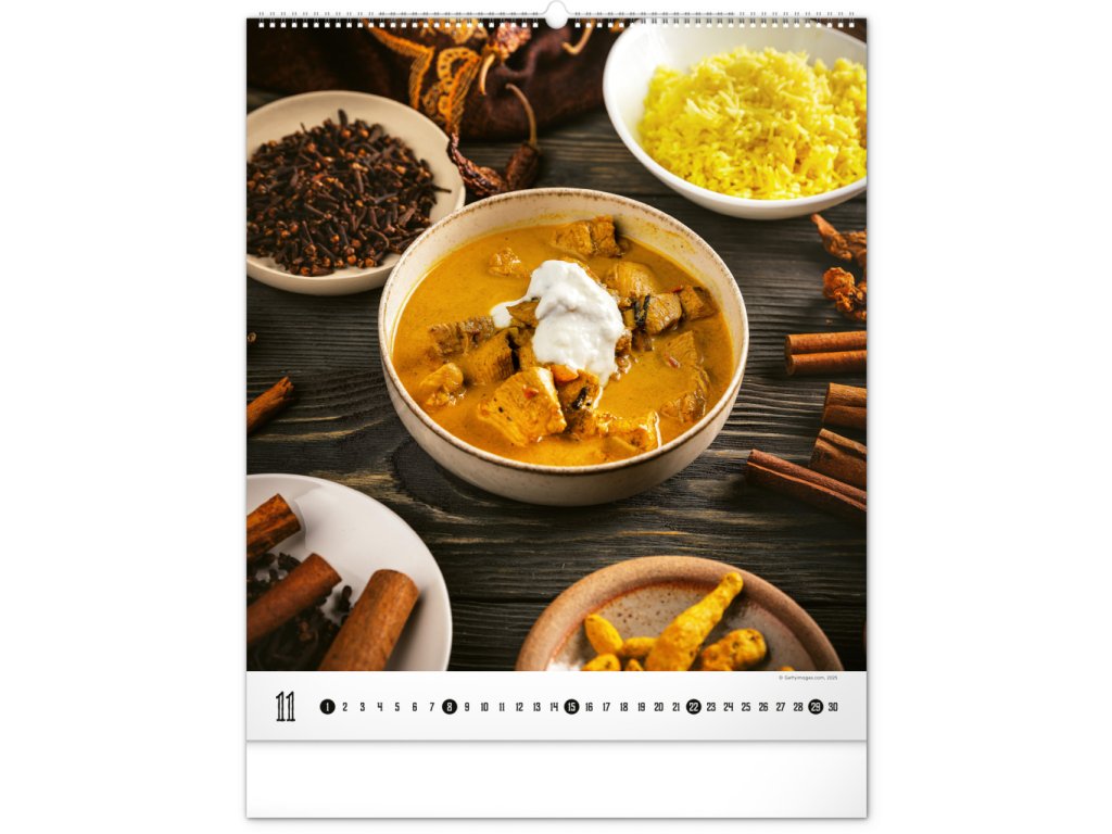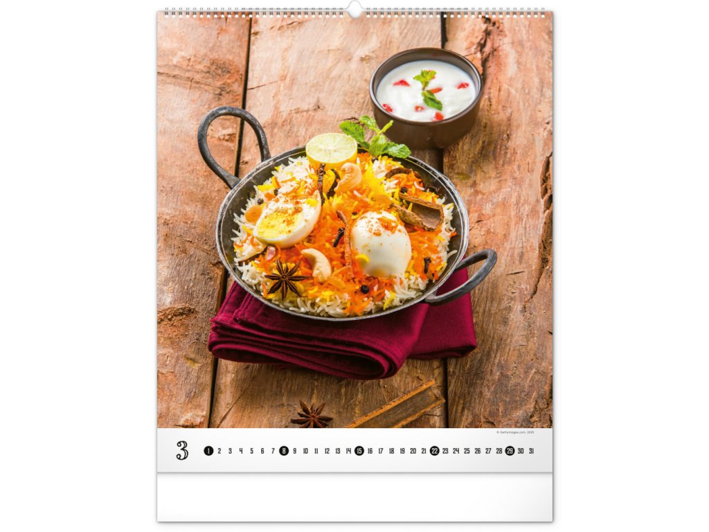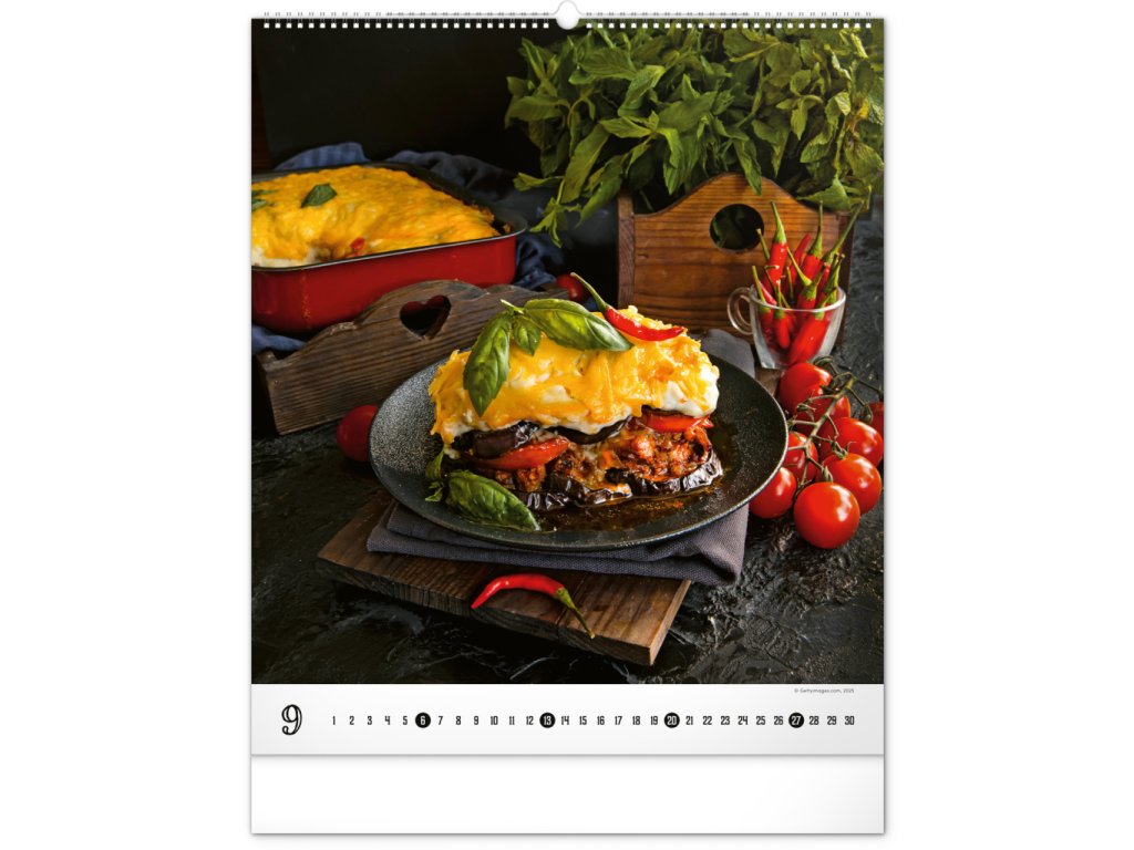 Velkoformátový kalendář z kolekce Platinum Collection obsahuje fotografie luxusních pokrmů, které budete chtít ochutnat. Šťavnaté steaky, křidýlka i stehýnka nebo oku lahodící dezerty oživí interiér v každé kuchyni či jídelně. Kalendář zahrnuje jednoduché kalendárium.Doplňkové parametry