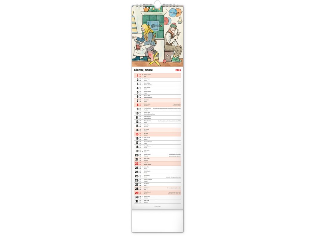 NOTIQUE Nástěnný kalendář Josef Lada 2026, 12 x 48 cm