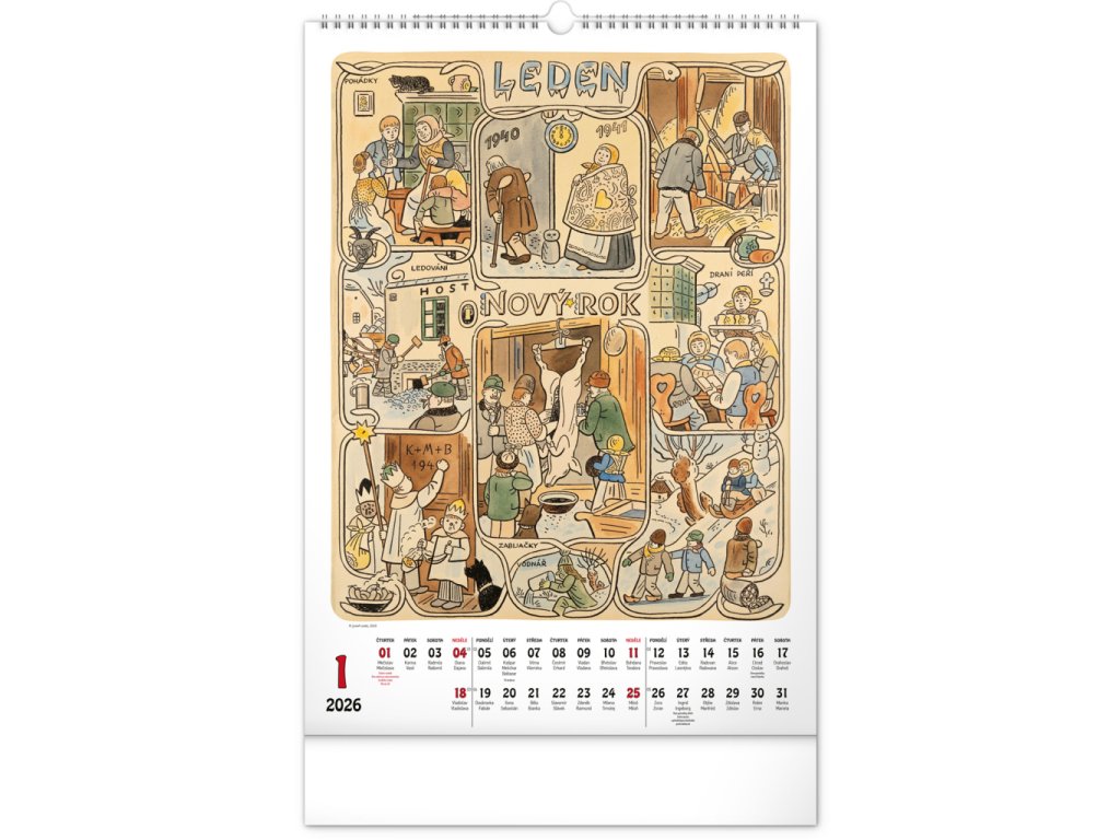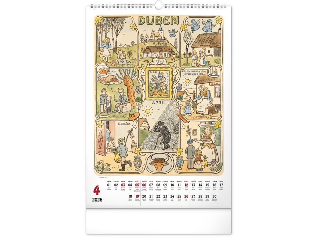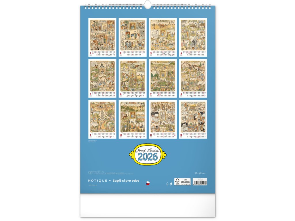 NOTIQUE Nástěnný kalendář Josef Lada 2026, 33 x 46 cm