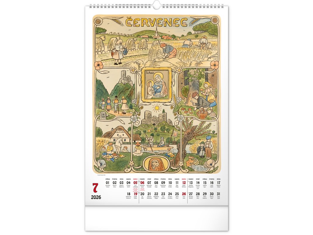 Nástěnný kalendář s ilustracemi Josefa Lady a cyklem 12 měsíců je vyhotoven v oblíbeném formátu, který osvěží každý interiér. V kalendáři je rovnocenně zahrnuta čeština a slovenština, ilustrace doplňuje kalendárium s českými a slovenskými jmeninami, svátky, památnými dny a měsíčními fázemi.Doplňkové parametry