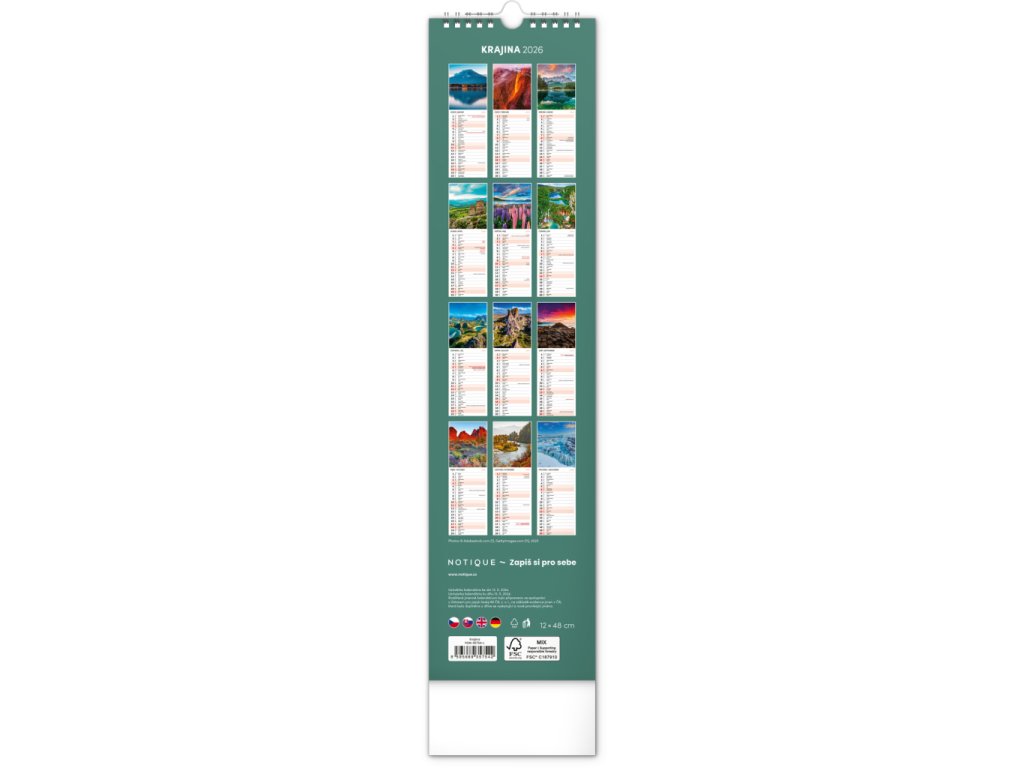 NOTIQUE Nástěnný kalendář Krajina 2026, 12 x 48 cm