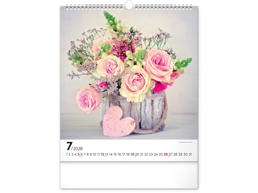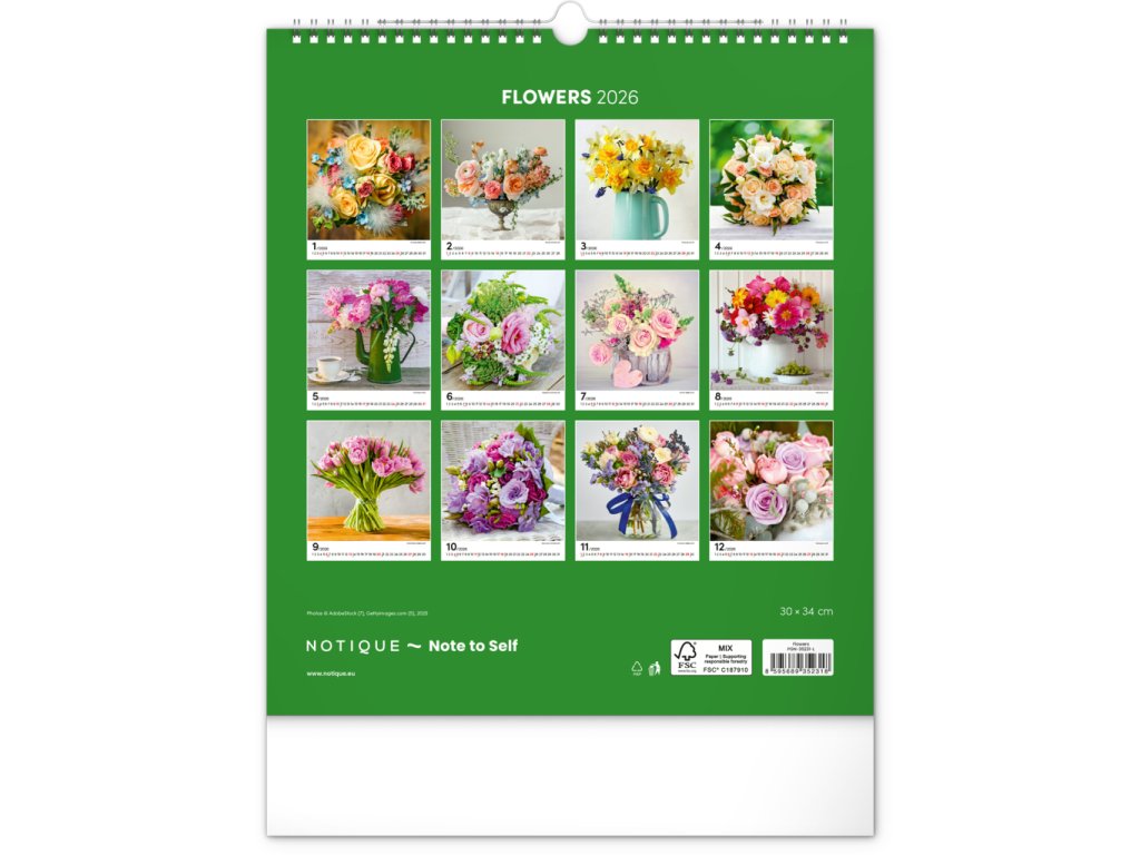 NOTIQUE Nástěnný kalendář Květiny 2026, 30 x 34 cm
