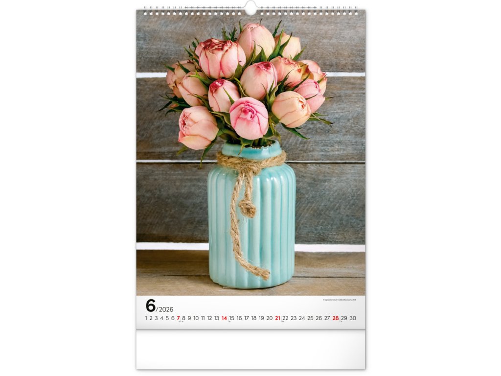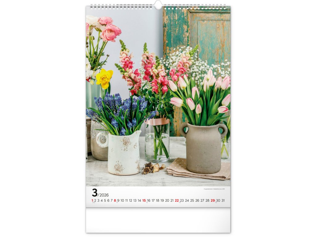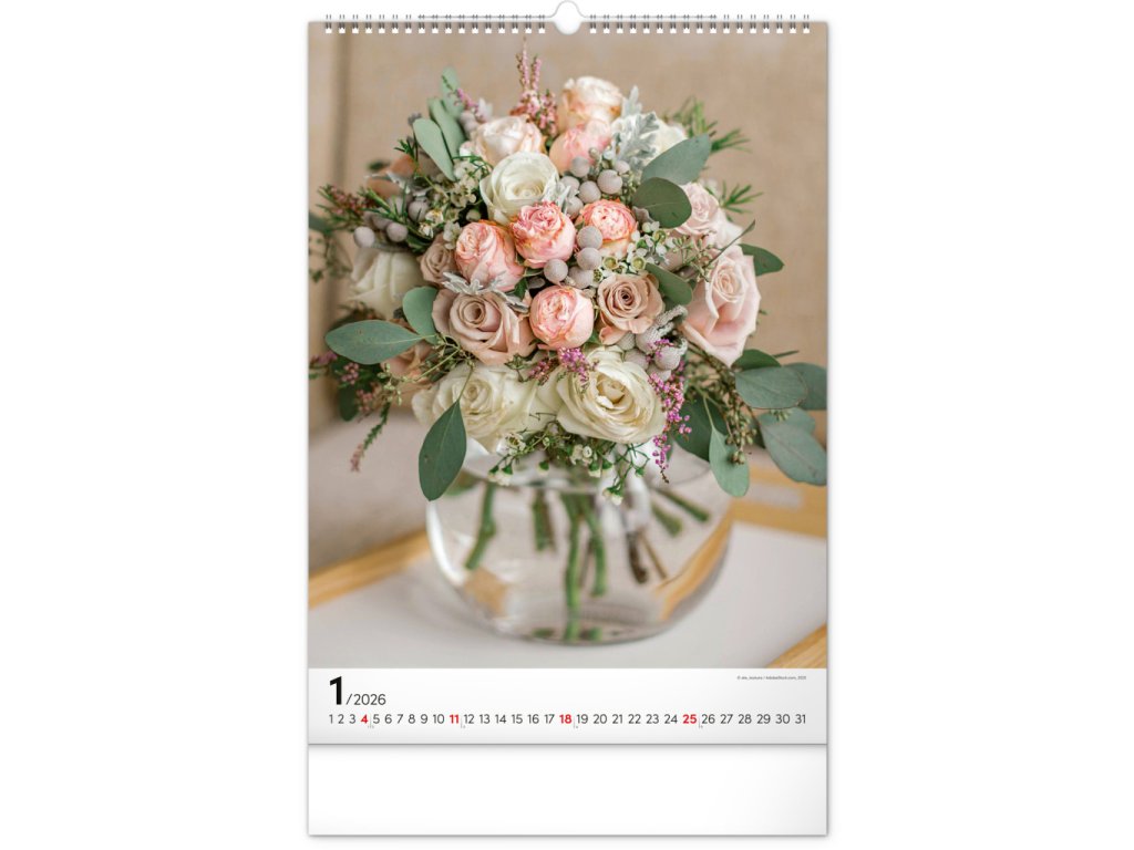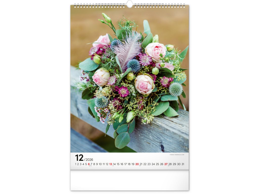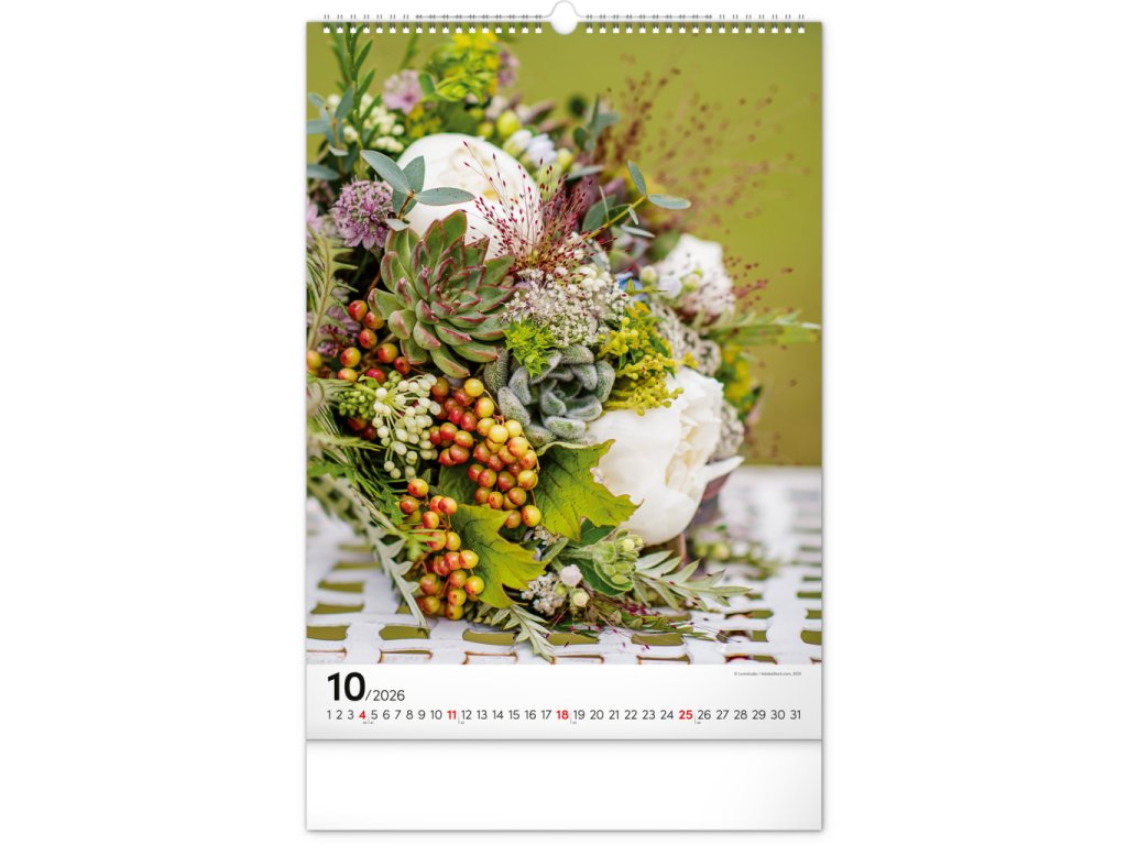 Originálně naaranžované kytice z čerstvých živých květů v nástěnném kalendáři s univerzálním kalendáriem. Potěšte se pohledem na fotografie pestrých a nikdy nevadnoucích květů bez ohledu na roční dobu.Doplňkové parametry