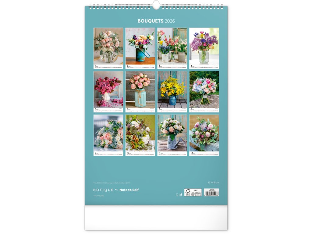NOTIQUE Nástěnný kalendář Kytice 2026, 33 x 46 cm