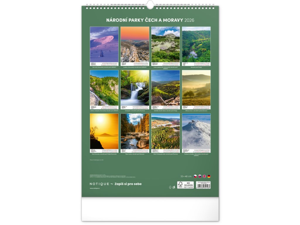 NOTIQUE Nástěnný kalendář Národní parky Čech a Moravy 2026, 33 x 46 cm