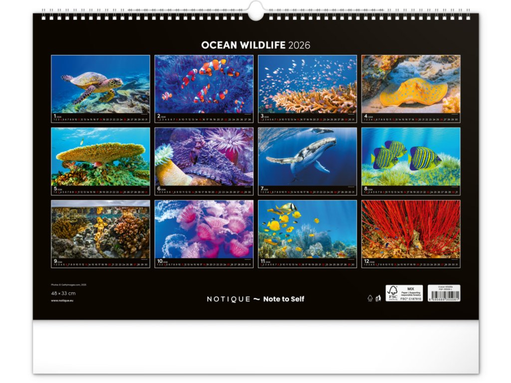 NOTIQUE Nástěnný kalendář Podmořský svět 2026, 48 x 33 cm