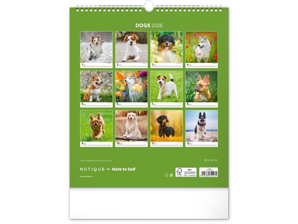 NOTIQUE Nástěnný kalendář Psi 2026, 30 x 34 cm