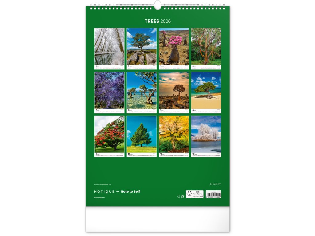 NOTIQUE Nástěnný kalendář Stromy 2026, 33 x 46 cm