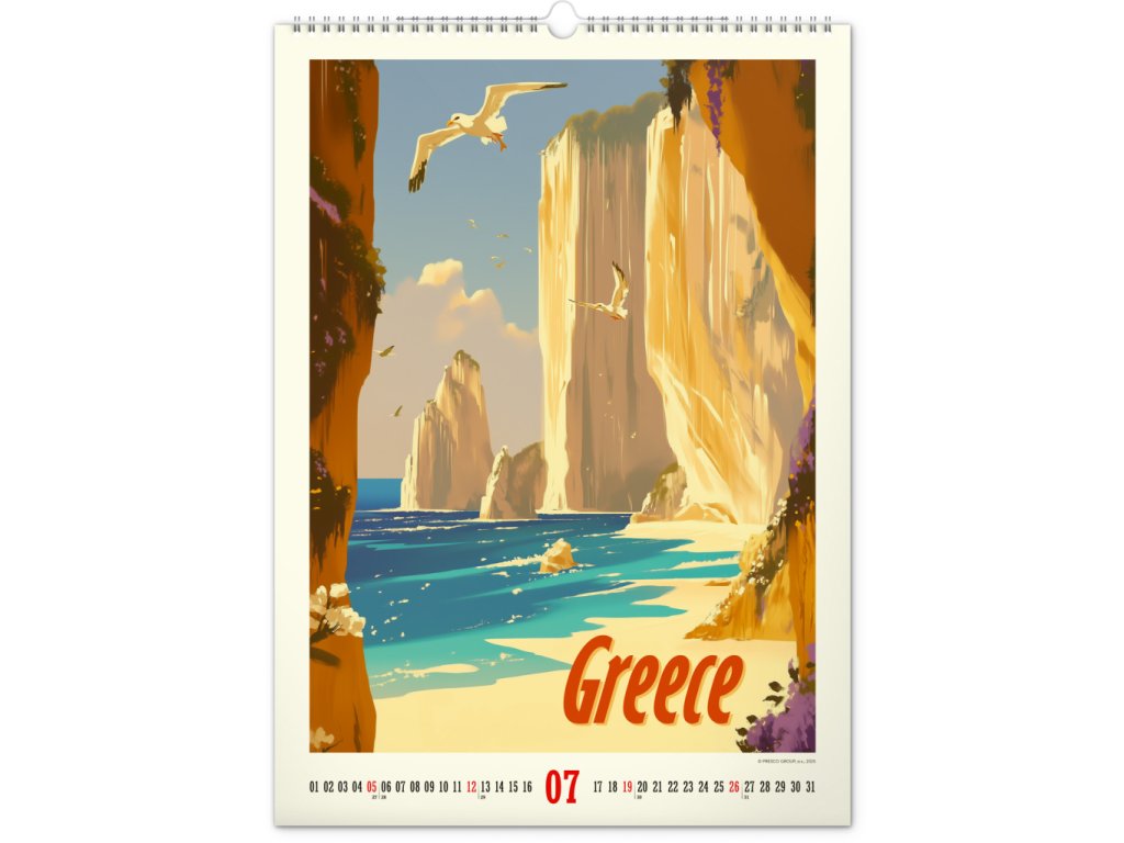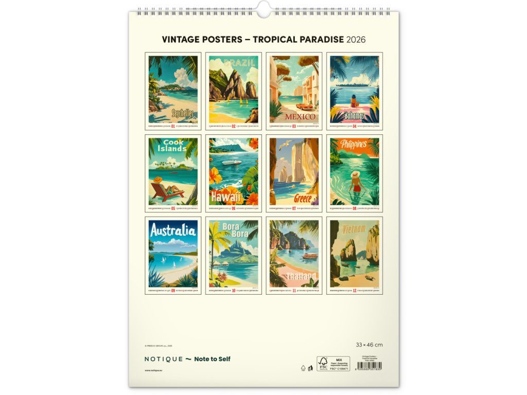 NOTIQUE Nástěnný kalendář Vintage plakáty – tropické ráje 2026, 33 x 46 cm