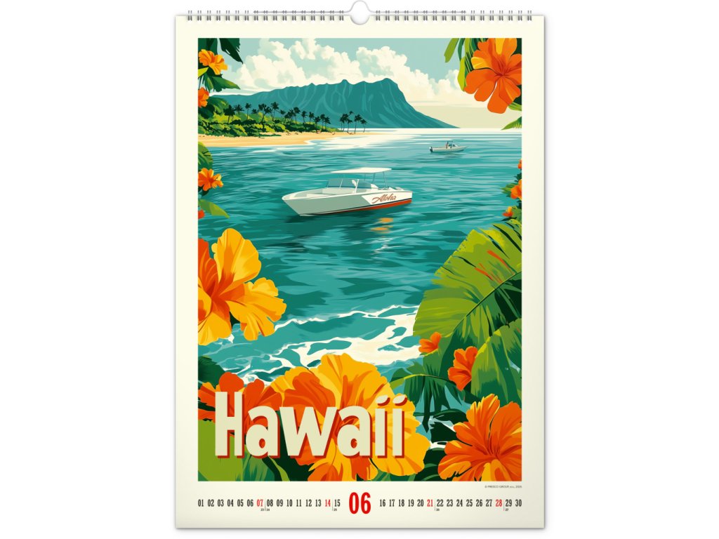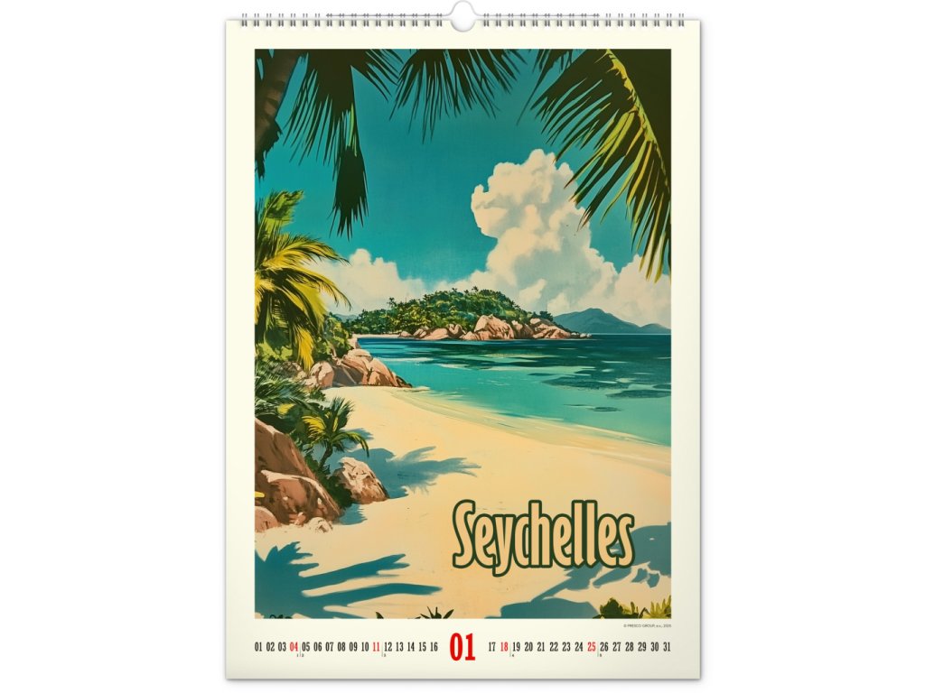 Zasněte se nad krásou tropických rájů s atmosférou starých časů. Nástěnný kalendář doplňuje jednoduché kalendárium na bílém pozadí.Doplňkové parametry