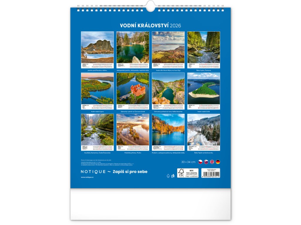 NOTIQUE Nástěnný kalendář Vodní království 2026, 30 x 34 cm