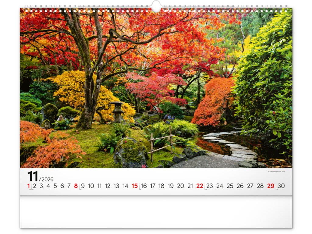 NOTIQUE Nástěnný kalendář Zahrady 2026, 48 x 33 cm