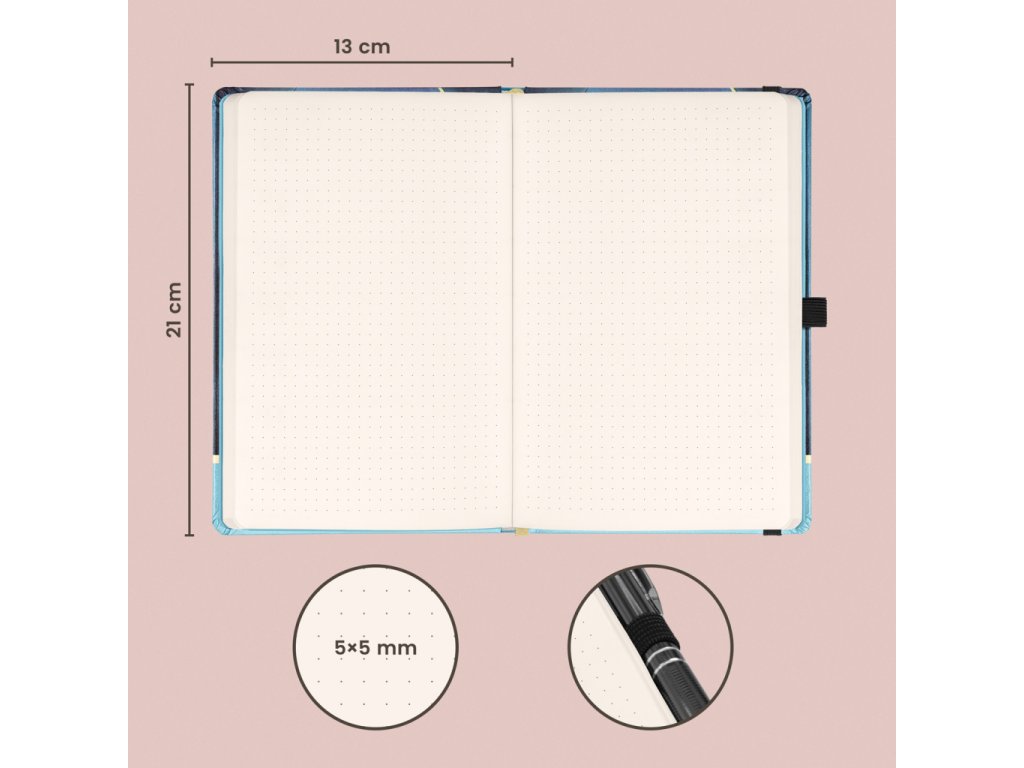 | Vazba: | tuhá knižní s gumičkou na uzavření a poutkem na tužku |