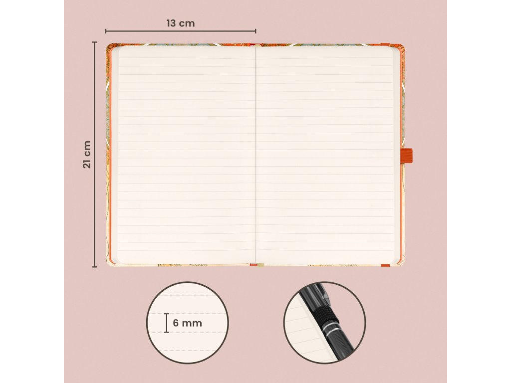 Kvalitní linkovaný notes v pevných deskách s uzavíráním na gumičku, poutkem na tužku a vnitřní kapsou na drobnosti. Uvnitř najdete 172 tečkovaných stran na žlutém papíře pro zapsání všech vašich nápadů. Linkovaný zápisník můžete použít jako deník, psát do něj hluboké myšlenky nebo pracovní poznámky.Doplňkové parametry