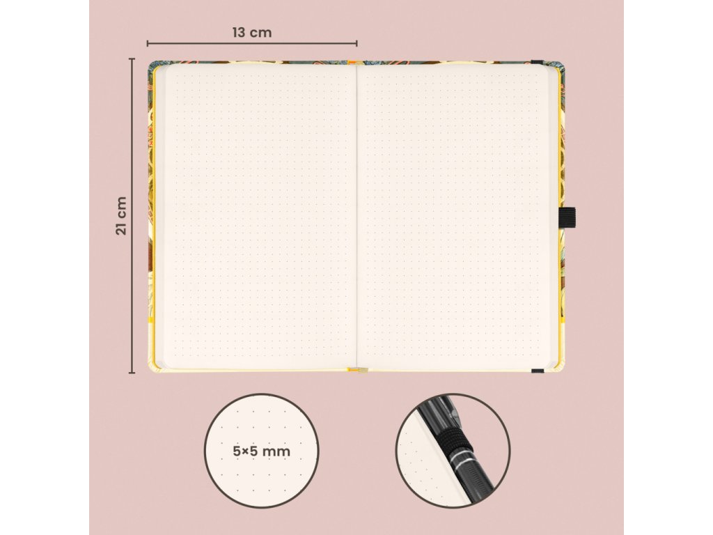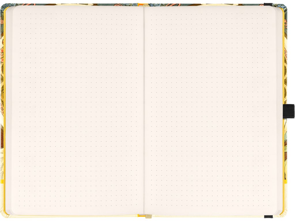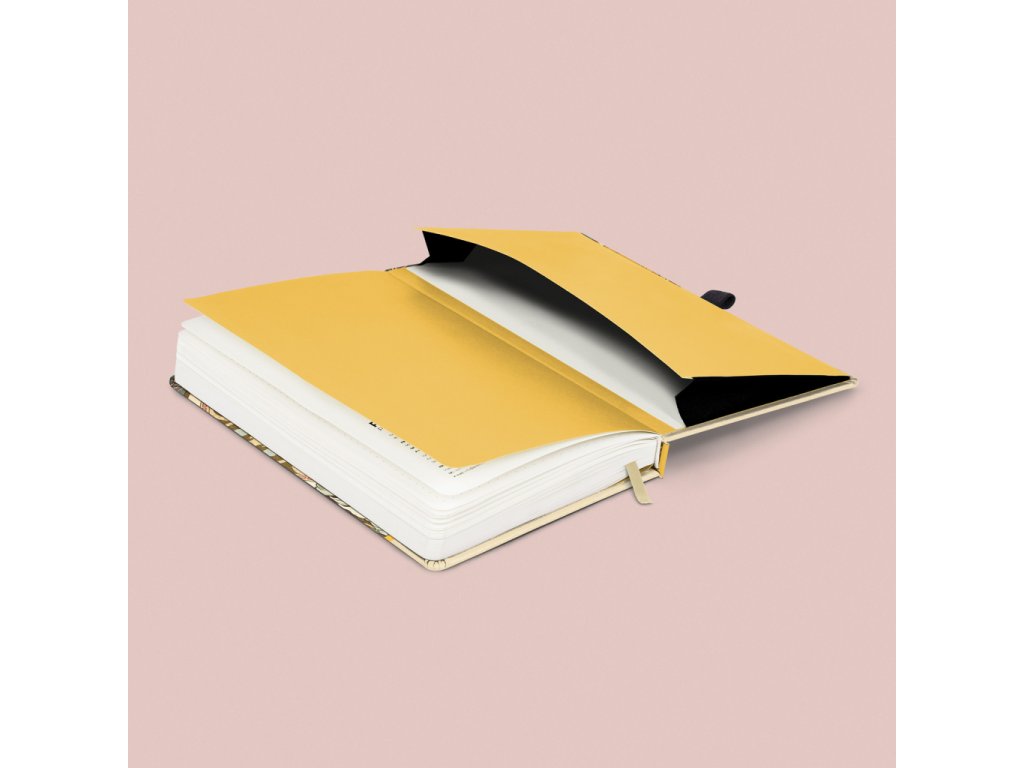 Notes v pevných deskách s motivem díla Alfonse Muchy, s uzavíráním na gumičku, kapsou na drobnosti a poutkem na tužku. Vevnitř najdete 172 tečkovaných stran na žlutém papíře pro zapsání všech vašich nápadů.Doplňkové parametry