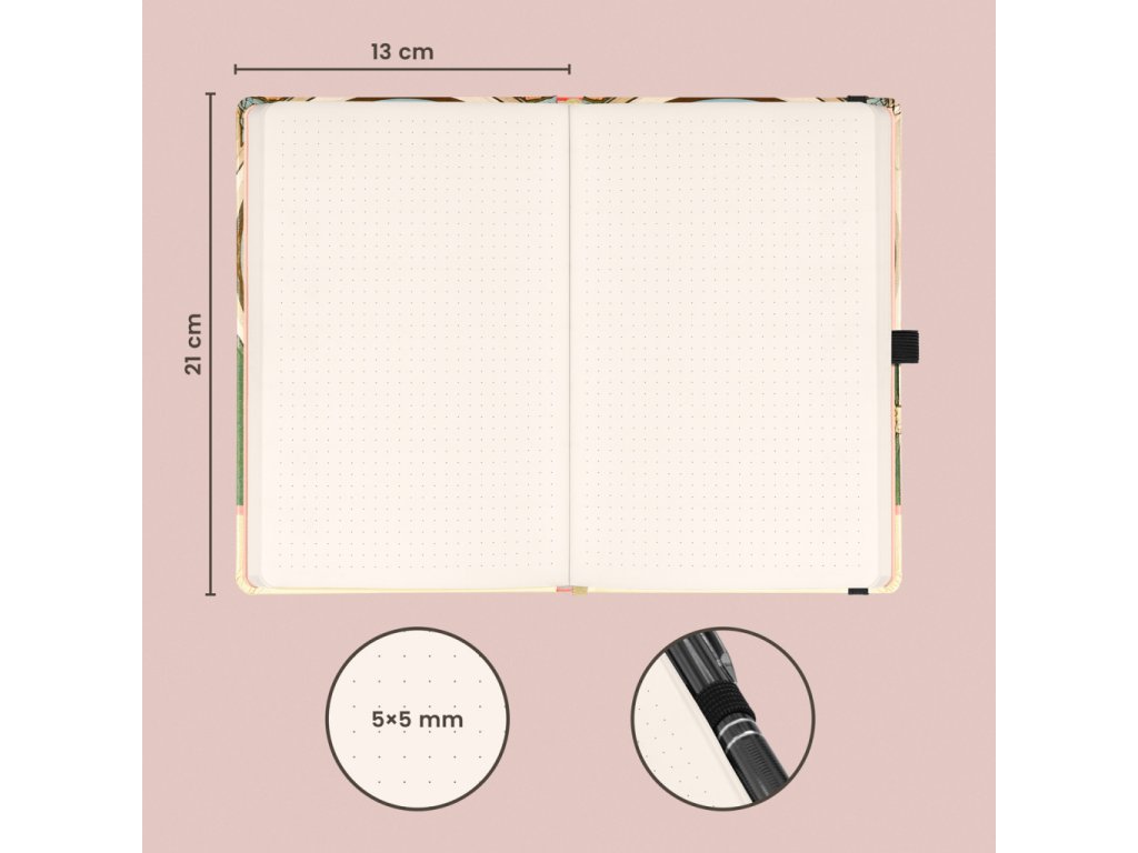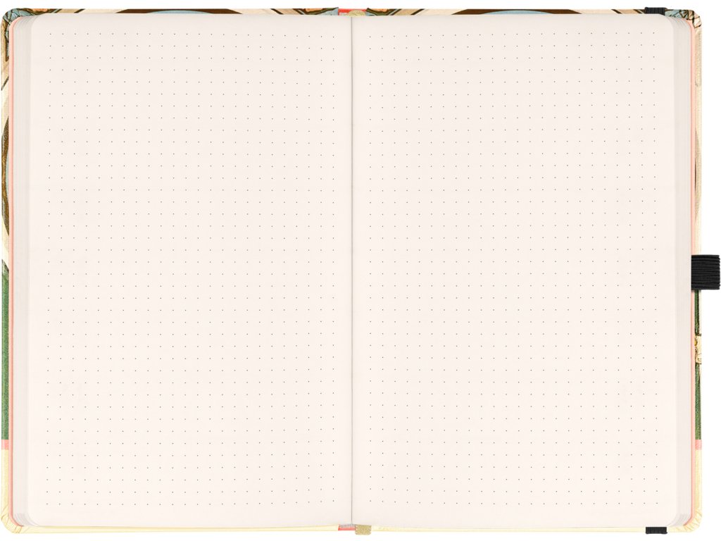 Notes v pevných deskách s motivem díla Alfonse Muchy, s uzavíráním na gumičku, kapsou na drobnosti a poutkem na tužku. Vevnitř najdete 172 tečkovaných stran na žlutém papíře pro zapsání všech vašich nápadů.Doplňkové parametry