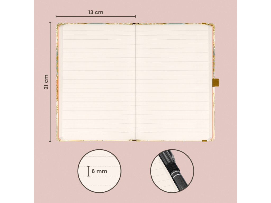 Kvalitní linkovaný notes v pevných deskách s uzavíráním na gumičku, poutkem na tužku a vnitřní kapsou na drobnosti. Uvnitř najdete 172 tečkovaných stran na žlutém papíře pro zapsání všech vašich nápadů. Linkovaný zápisník můžete použít jako deník, psát do něj hluboké myšlenky nebo pracovní poznámky.Doplňkové parametry