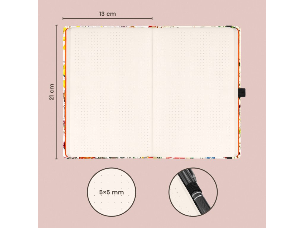 Notes v pevných deskách z kolekce Kateřiny Winterové s ilustracemi květin, s uzavíráním na gumičku, kapsou na drobnosti a poutkem na tužku. Vevnitř najdete 172 tečkovaných stran na žlutém papíře pro zapsání všech vašich nápadů.Doplňkové parametry