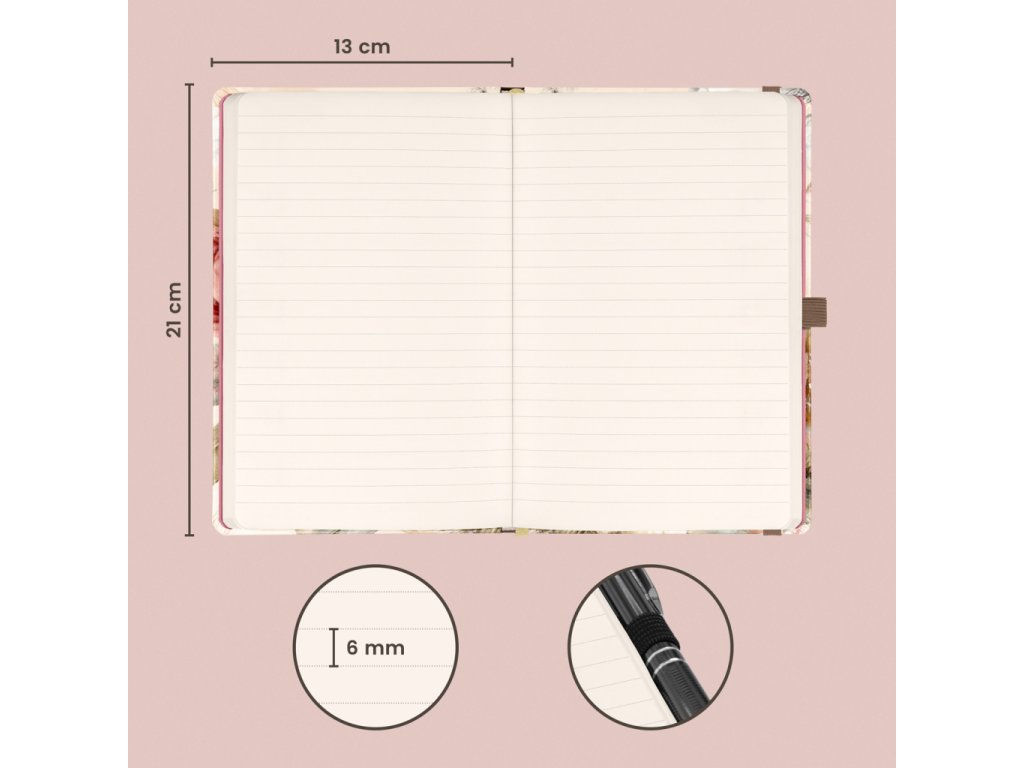 NOTIQUE Notes Pudrové květy, linkovaný, 13 x 21 cm