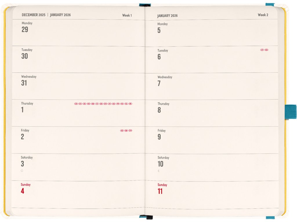 DVA SVĚTY. JEDEN PRODUKT. Hledáte dokonalou kombinaci plánování a zapisování poznámek? PLANBOOK vám přináší to nejlepší z obou světů! Perfektní spojení diáře a zápisníku – první polovina obsahuje čtrnáctidenní horizontální kalendárium s mezinárodními svátky, zatímco druhá polovina nabízí linkované stránky pro vaše poznámky. Praktický, stylový a dokonale přizpůsobený vašim potřebám – ať už si plánujete den, nebo přemýšlíte nad dalším velkým projektem. PLANBOOK je ideální pro všechny, kteří milují organizaci a kreativitu na jednom místě.Doplňkové parametry