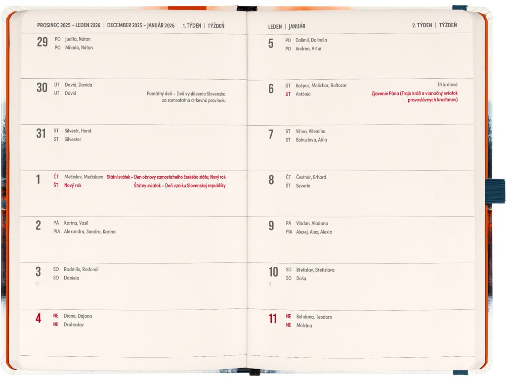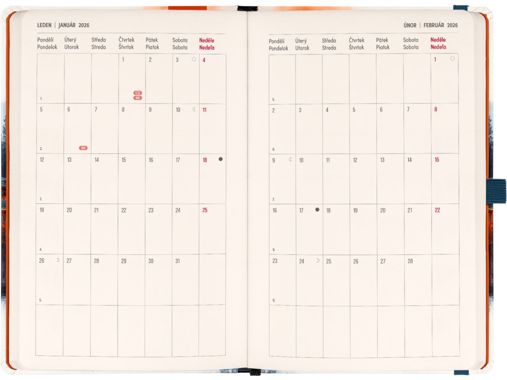 DVA SVĚTY. JEDEN PRODUKT. Hledáte dokonalou kombinaci plánování a zapisování poznámek? PLANBOOK vám přináší to nejlepší z obou světů! Perfektní spojení diáře a zápisníku – první polovina obsahuje čtrnáctidenní horizontální kalendárium s českými a slovenskými svátky, zatímco druhá polovina nabízí linkované stránky pro vaše poznámky. Praktický, stylový a dokonale přizpůsobený vašim potřebám – ať už si plánujete den, nebo přemýšlíte nad dalším velkým projektem. PLANBOOK je ideální pro všechny, kteří milují organizaci a kreativitu na jednom místě.Doplňkové parametry