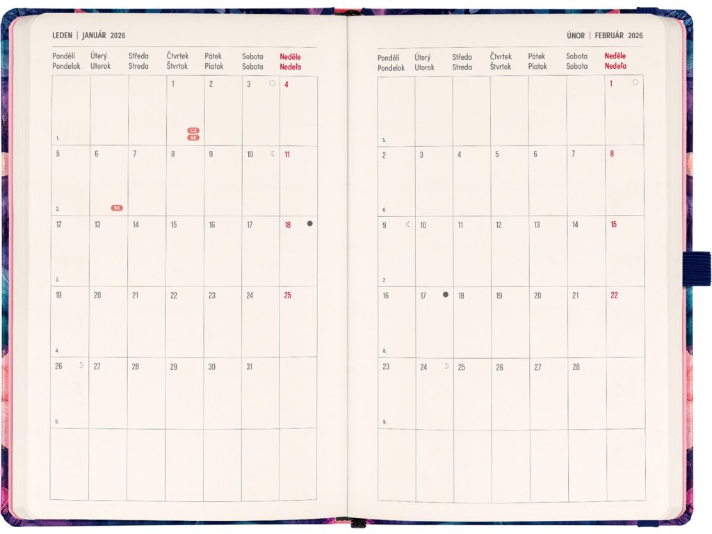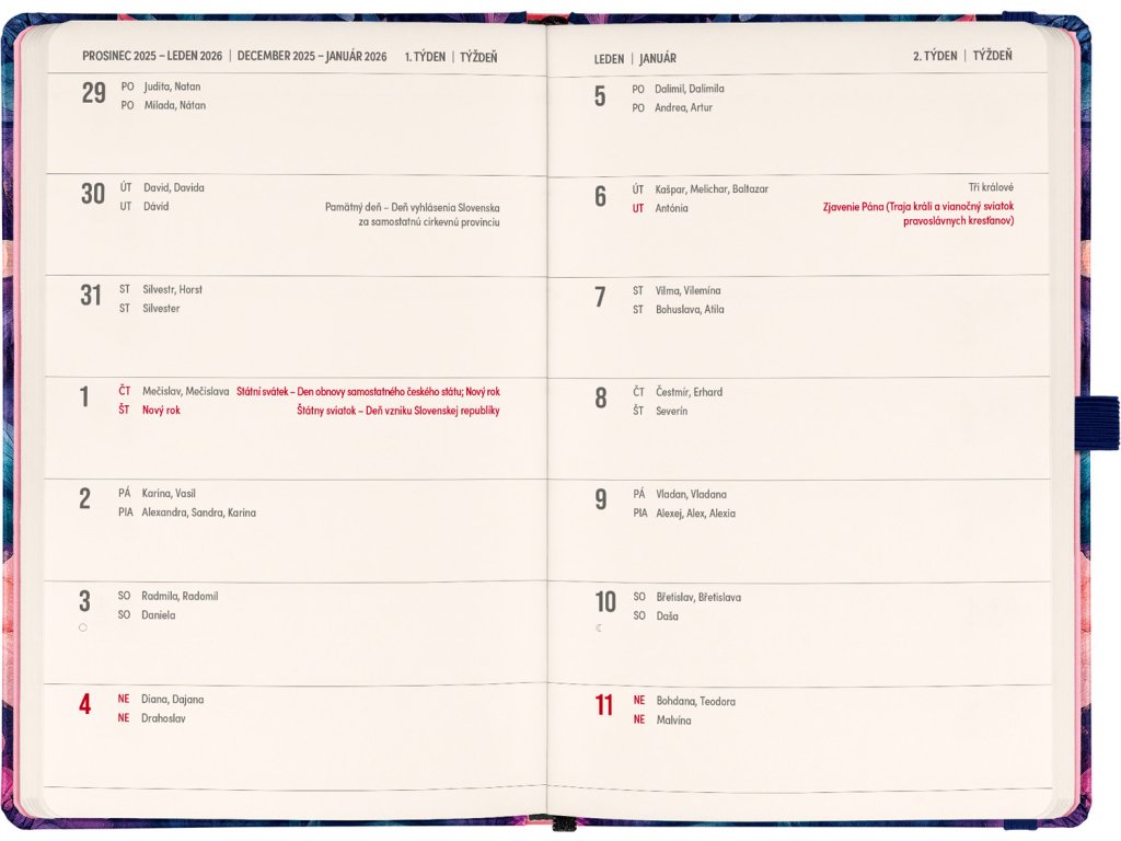 DVA SVĚTY. JEDEN PRODUKT. Hledáte dokonalou kombinaci plánování a zapisování poznámek? PLANBOOK vám přináší to nejlepší z obou světů! Perfektní spojení diáře a zápisníku – první polovina obsahuje čtrnáctidenní horizontální kalendárium s českými a slovenskými svátky, zatímco druhá polovina nabízí linkované stránky pro vaše poznámky. Praktický, stylový a dokonale přizpůsobený vašim potřebám – ať už si plánujete den, nebo přemýšlíte nad dalším velkým projektem. PLANBOOK je ideální pro všechny, kteří milují organizaci a kreativitu na jednom místě.Doplňkové parametry