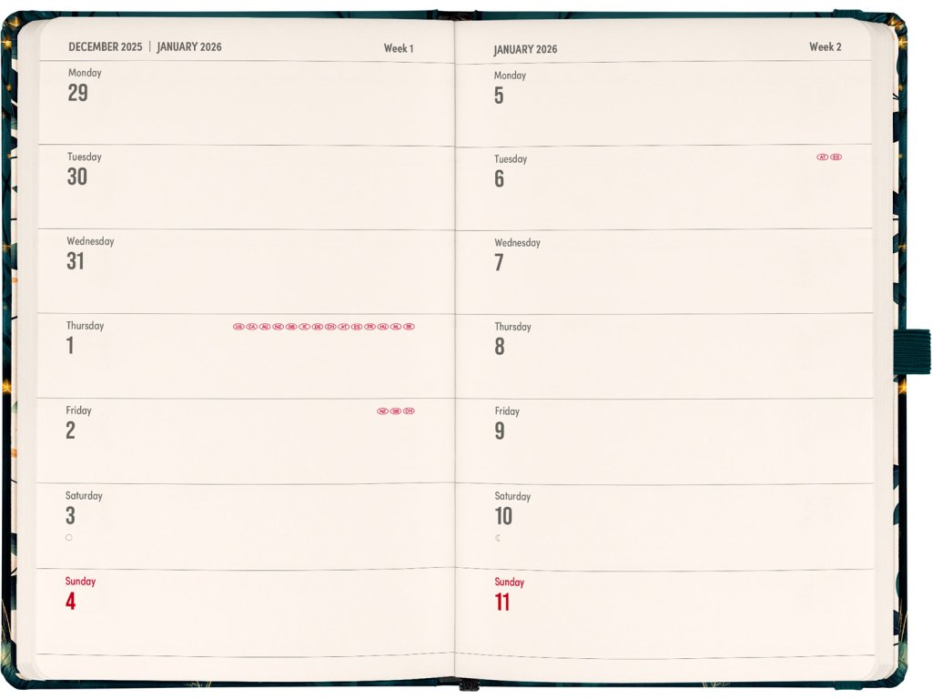 DVA SVĚTY. JEDEN PRODUKT. Hledáte dokonalou kombinaci plánování a zapisování poznámek? PLANBOOK vám přináší to nejlepší z obou světů! Perfektní spojení diáře a zápisníku – první polovina obsahuje čtrnáctidenní horizontální kalendárium s mezinárodními svátky, zatímco druhá polovina nabízí linkované stránky pro vaše poznámky. Praktický, stylový a dokonale přizpůsobený vašim potřebám – ať už si plánujete den, nebo přemýšlíte nad dalším velkým projektem. PLANBOOK je ideální pro všechny, kteří milují organizaci a kreativitu na jednom místě.Doplňkové parametry