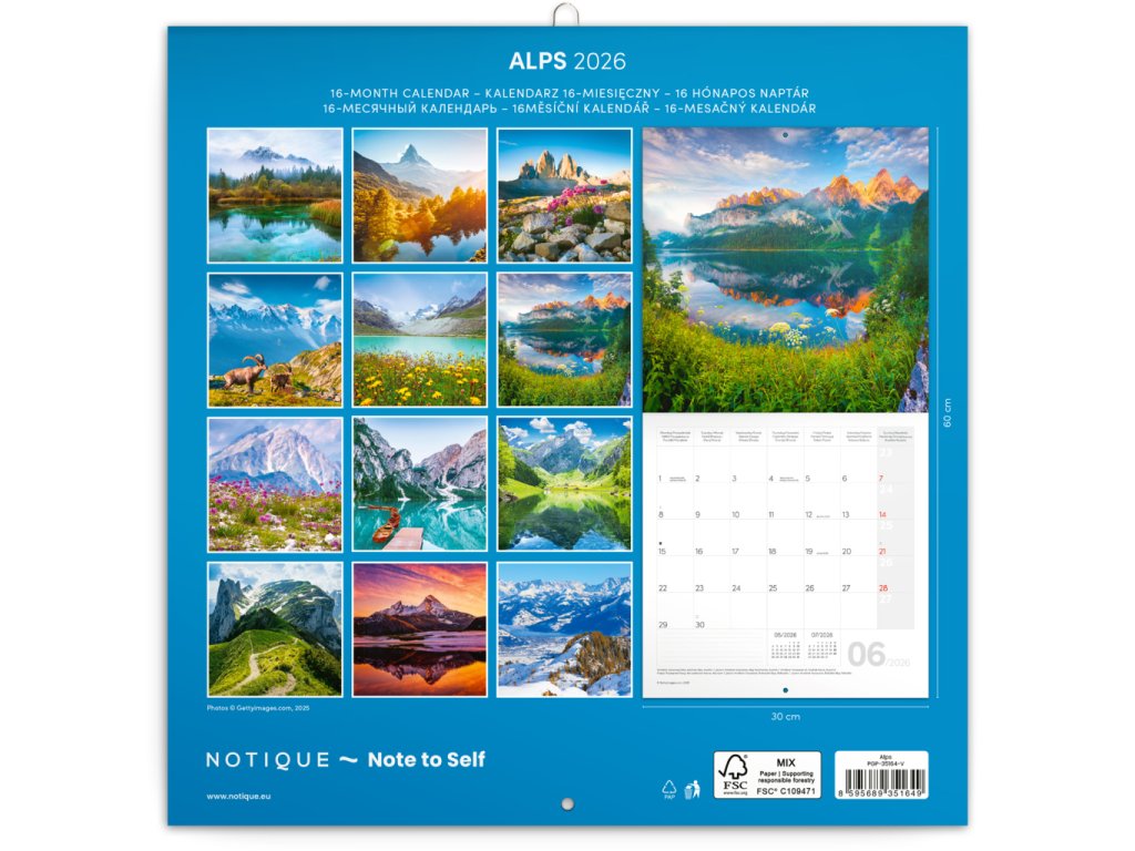 NOTIQUE Poznámkový kalendář Alpy 2026, 30 x 30 cm