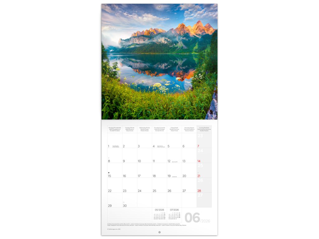 Nejvyšší evropské pohoří na dvanácti fotografiích ve špičkové kvalitě na stránkách poznámkového kalendáře. V kalendáři kromě fotek najdete přehledné kalendárium od září 2025 do prosince 2026 v šesti jazycích, měsíční fáze, důležité svátky a prostor pro poznámky na každý den.Doplňkové parametry