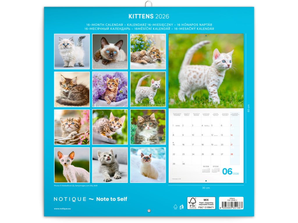 NOTIQUE Poznámkový kalendář Koťata 2026, 30 x 30 cm