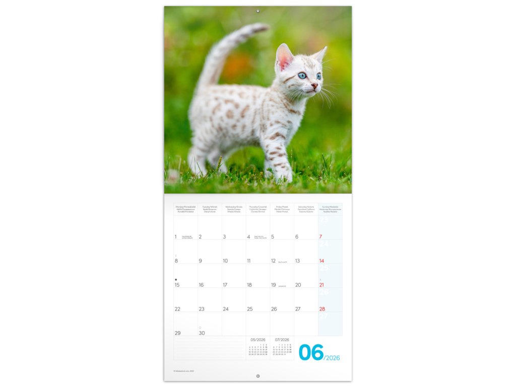 Poznámkový kalendář s hravými a roztomilými koťaty, se kterými byste se nejraději pomazlili. Uvnitř najdete přehledné kalendárium od září 2025 do prosince 2026 v šesti jazycích, měsíční fáze, důležité svátky a prostor pro poznámky na každý den.Doplňkové parametry
