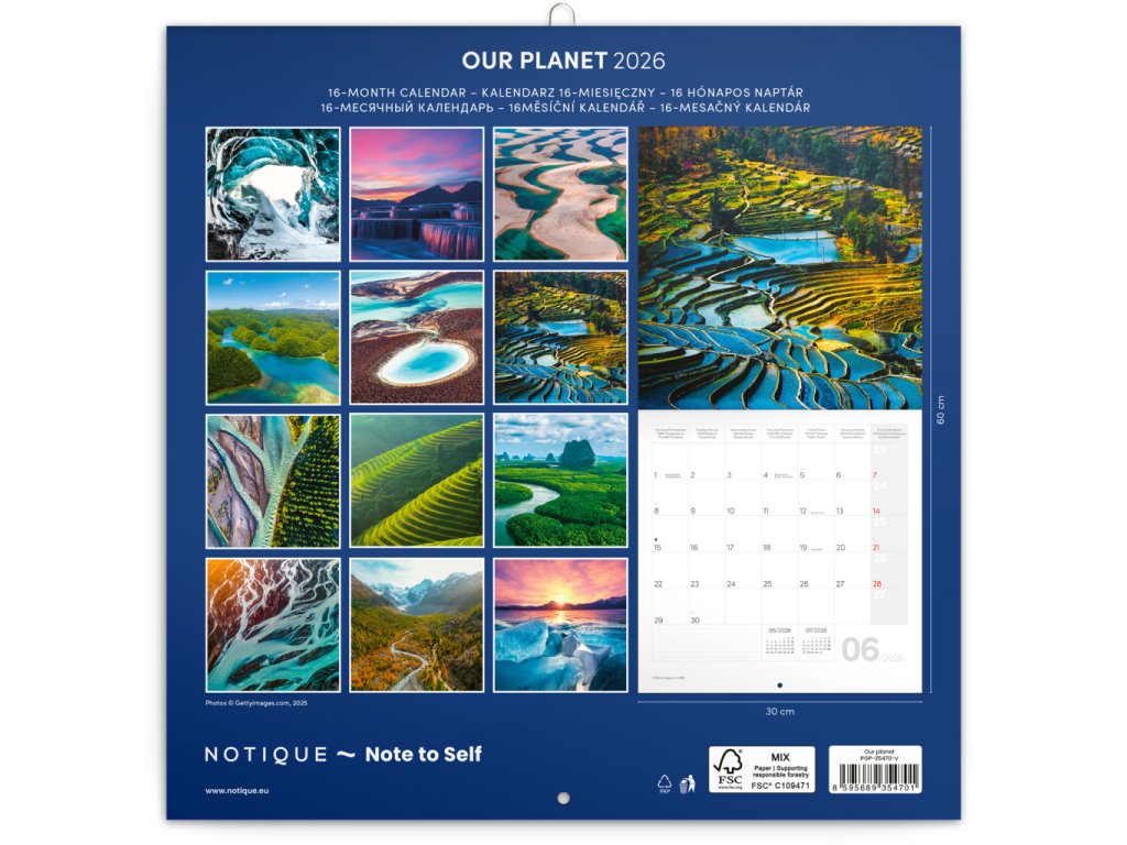 NOTIQUE Poznámkový kalendář Naše Planeta 2026, 30 x 30 cm