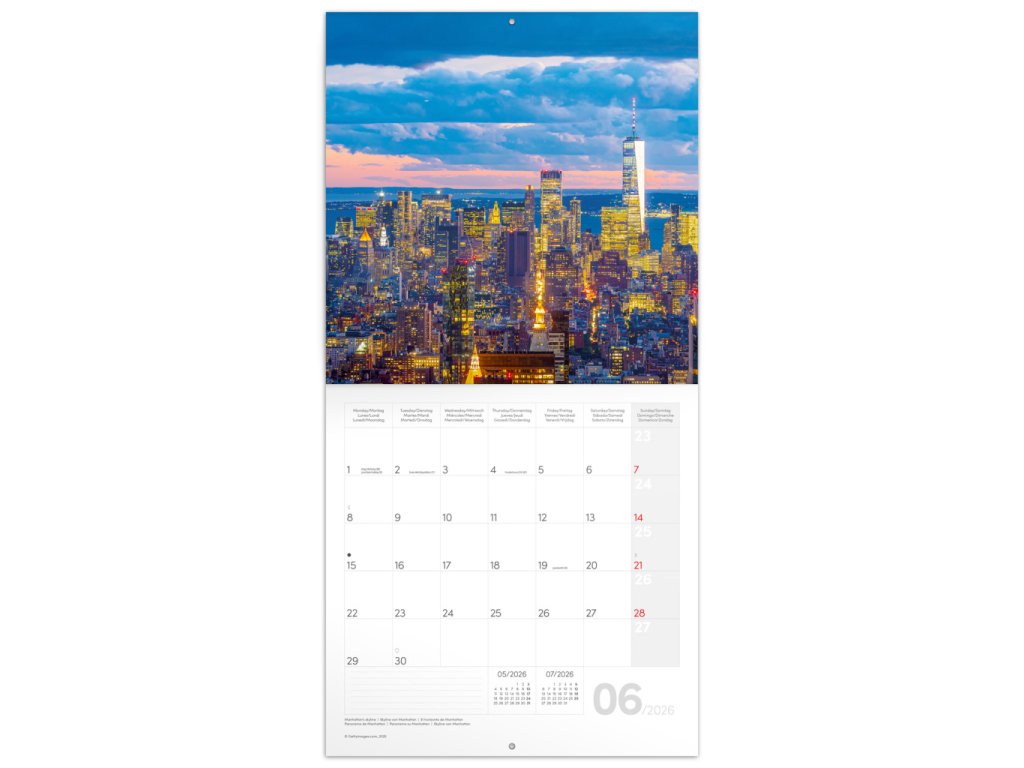 Dvanáct špičkových fotografií pulzujícího New Yorku se šestijazyčným kalendáriem. Pověste si do svého interiéru okno do světa! Obsahuje měsíční fáze, důležité svátky a prostor pro vaše poznámky a plány.Doplňkové parametry