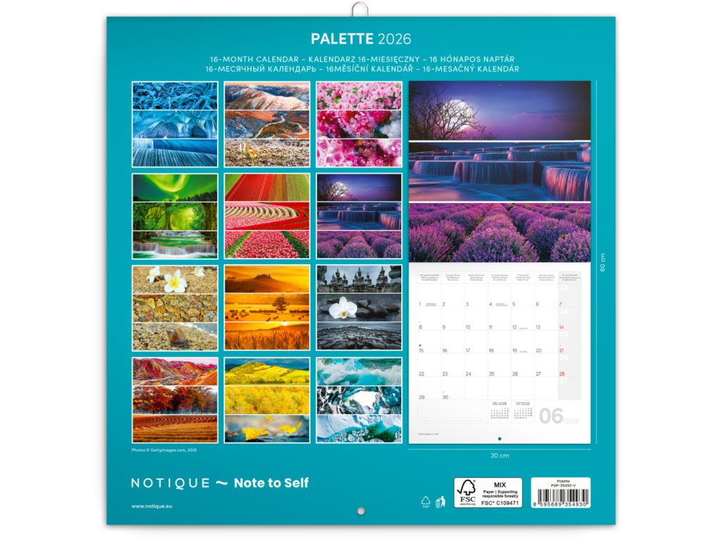 NOTIQUE Poznámkový kalendář Paleta 2026, 30 x 30 cm