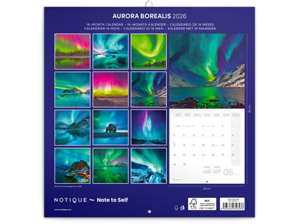 NOTIQUE Poznámkový kalendář Polární záře 2026, 30 x 30 cm