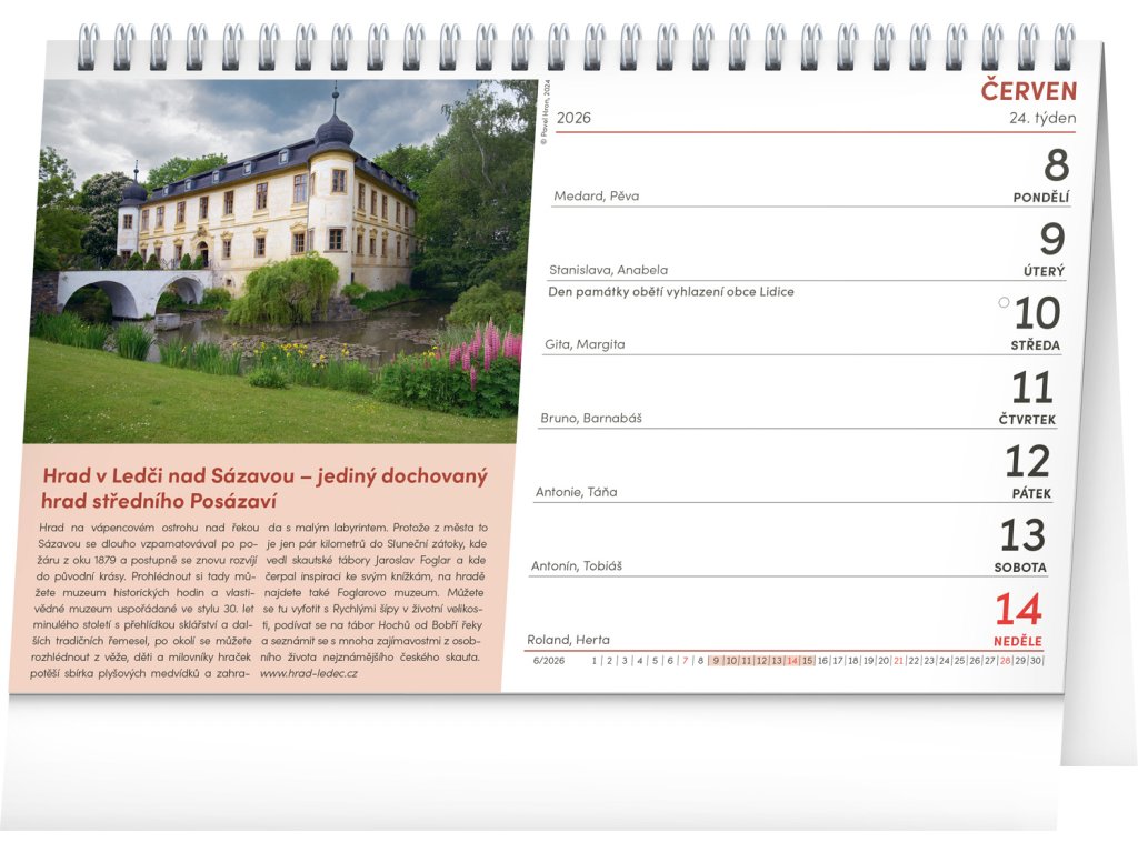 NOTIQUE Stolní kalendář Hrady a zámky 2026, 23,1 x 14,5 cm