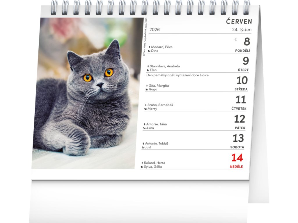 NOTIQUE Stolní kalendář Kočky – se jmény koček 2026, 16,5 x 13 cm