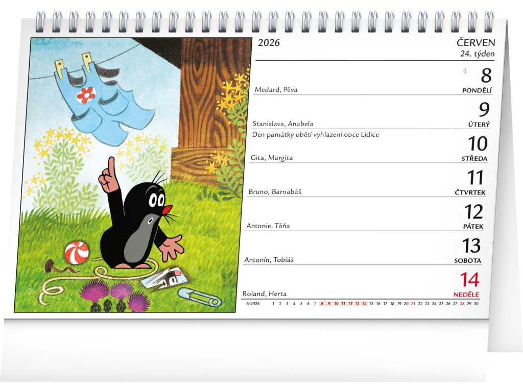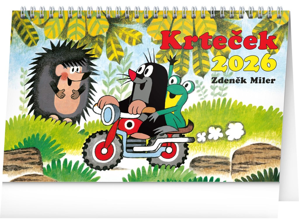 Krtkova dobrodružství si přál v dětství prožívat snad každý z nás. Praktický stolní kalendář s ilustracemi Zdeňka Milera z oblíbených příběhů o Krtečkovi obsahuje jeden obrázek na každý týden, kalendárium s českými jmény, svátky a památnými dny, fázemi měsíce a přehled na rok 2026 a 2027.Doplňkové parametry