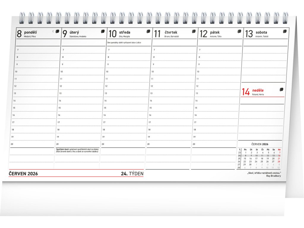 NOTIQUE Stolní kalendář Poznámkový daňový s citáty 2026, 25 x 14,5 cm