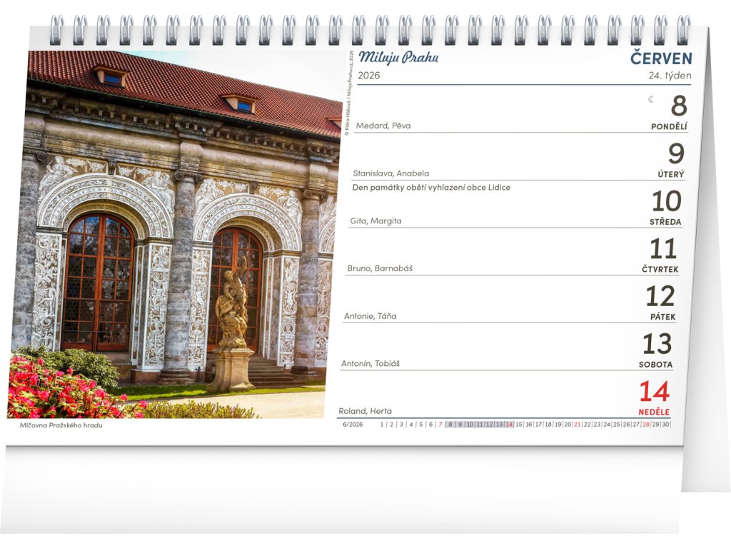 NOTIQUE Stolní kalendář Praha – Miluju Prahu 2026, 23,1 x 14,5 cm