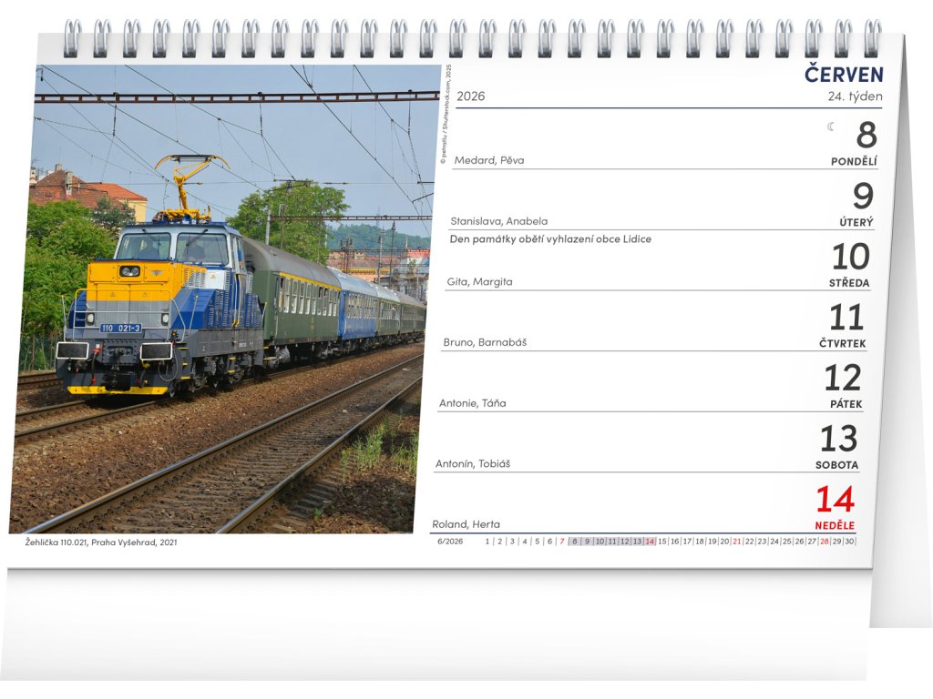 Jezdíte rádi vlakem, máte svou sbírku vláčků, nebo jste alespoň obdivovateli jejich krásy? Možná vám však chybí stolní kalendář s fotografiemi vlaků a železnice. České týdenní kalendárium s prostorem pro vaše poznámky obsahuje jména, svátky a další významné dny.Doplňkové parametry